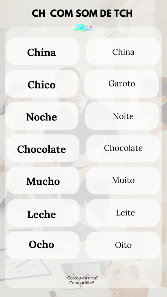 ➡ Em espanhol: O “ch” é pronunciado como [tʃ], semelhante ao som em inglês da palavra “cheese”.