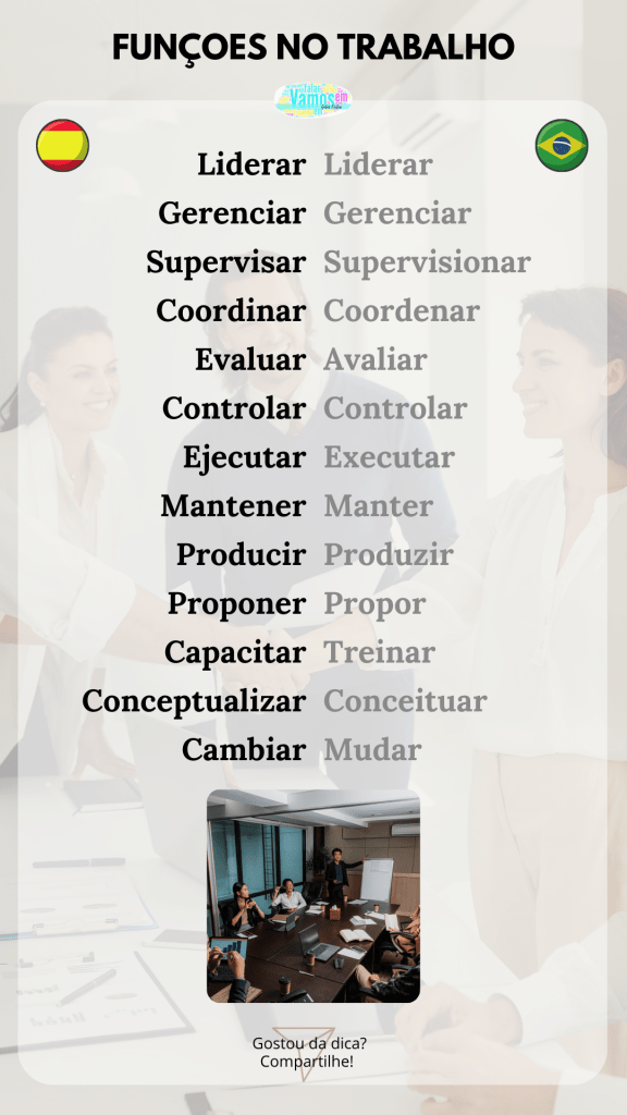 No local de #trabalho, dominar um vocabulário específico é fundamental para se comunicar de forma eficaz e ter um bom #desempenho em diversas funções. Veja abaixo uma lista dos principais verbos relacionados às funções de trabalho: