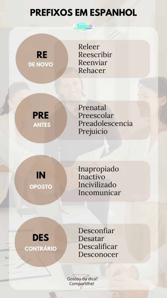 Os prefixos são elementos-chave em espanhol que, quando anexados às raízes das palavras, mudam seu significado. Conhecer e usar esses prefixos pode enriquecer seu vocabulário, especialmente nos negócios. Aqui estão alguns prefixos comuns e exemplos de seu uso em situações de trabalho: