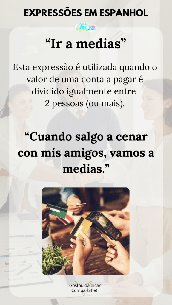 Se você fala português, talvez ache essa expressão curiosa. “Ir a medias” significa compartilhar uma despesa ou dividir algo igualmente.
